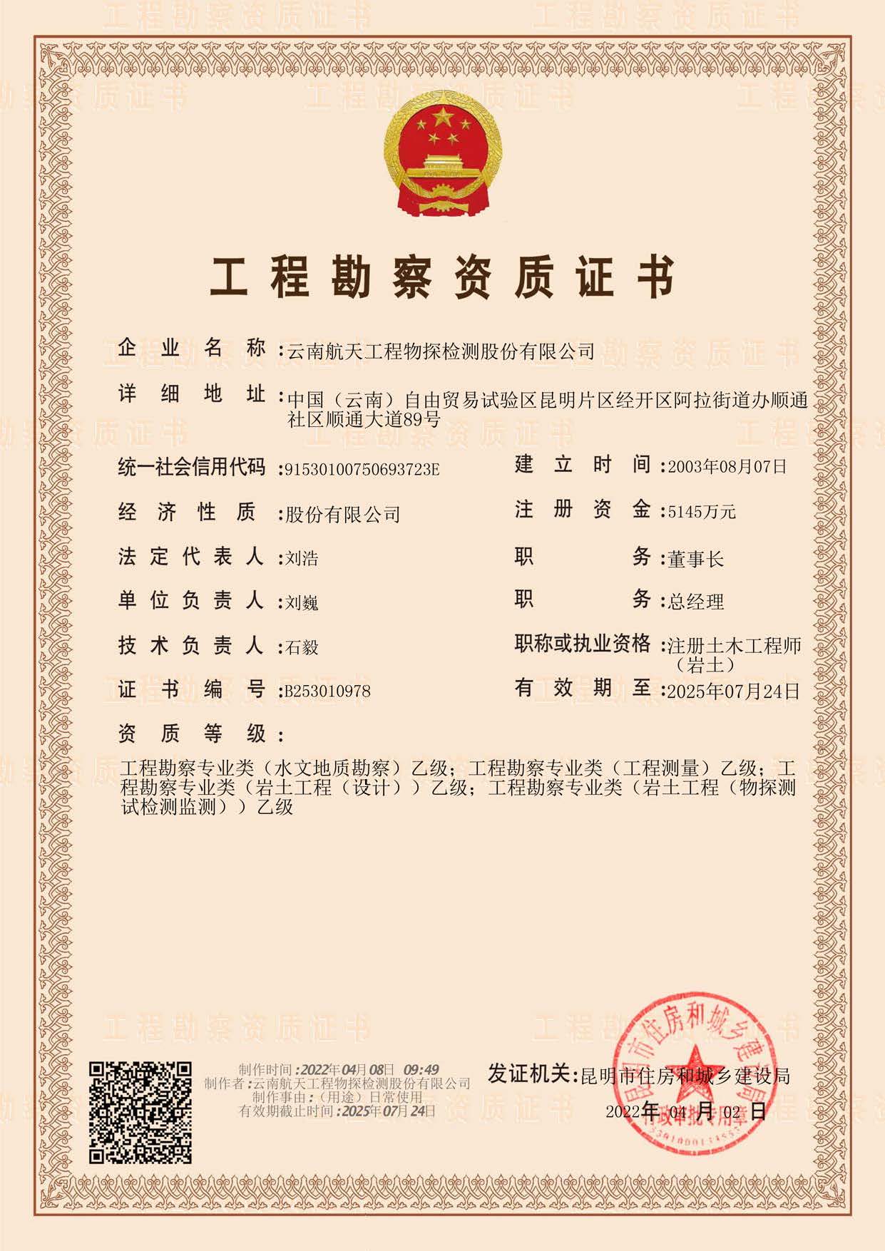 巖土工程勘察甲級