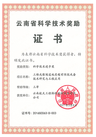 云南省科學(xué)技術(shù)獎(jiǎng)勵(lì)證書