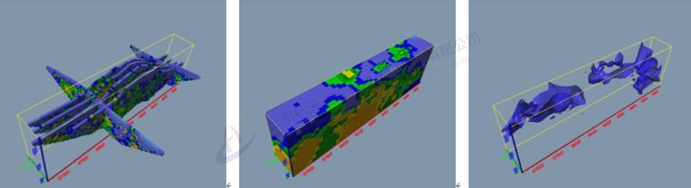 地質雷達三維探測結果——通過CT切片的形式精細反映隧道周邊水體三維分布情況