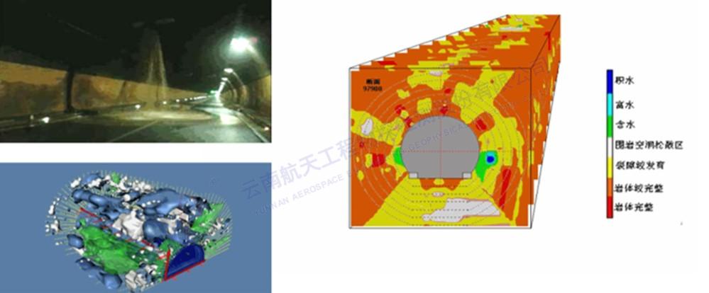 2014年,某高速公路運營隧道發生滲漏水病害,我公司使用三維高密度電法技術、地質雷達三維探測技術查明了隧道所處區域地下水分布情況、隧道周邊水體三維分布情況,為病害處治提供了技術支撐。
